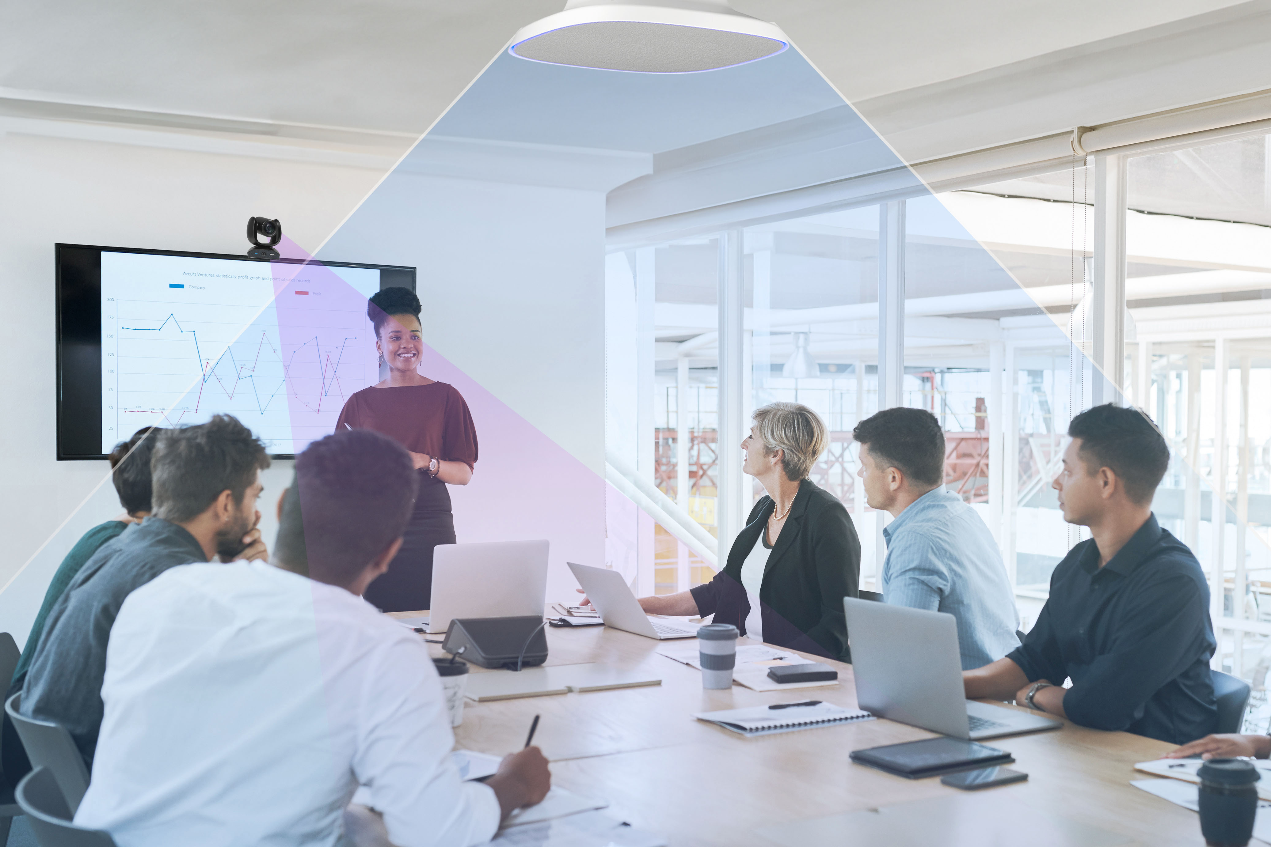 The IT department will initially configure camera and speakerphone settings to perform audio tracking in the conference room. Once set up, there’s no need to think about where in the room participants should sit for the best audio quality because it’s all covered.